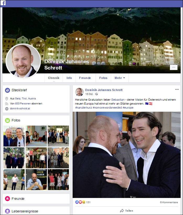 Sag mir, wer dir gratuliert, und ich sag dir … [27.05.2019]![]() Zur Erinnerung: Das vielleicht verlogenste Exemplar der türkisen Polit-Truppe Wer kennt die „Tiroler Kinderwelt“ von Landesobmann Dominik Schrott? |