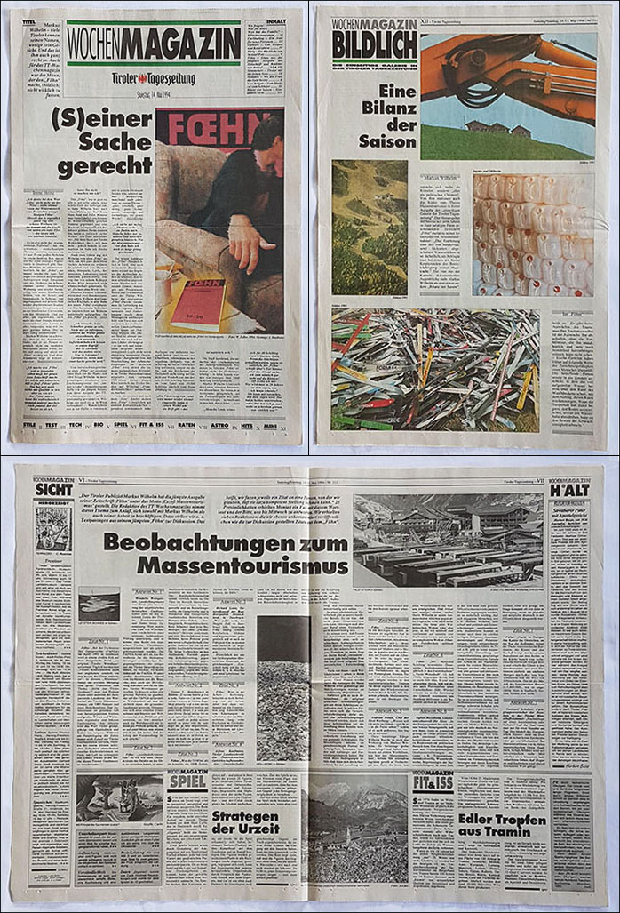 | Vor 25 Jahren widmete die Tiroler Tageszeitung dem dort mittlerweile namenlos gewordenen Blogger noch vier ganze Zeitungsseiten [14.05.2019] ![]() Tiroler Tageszeitung, 14. Mai 1994 Er, dessen Name in Tirol nicht genannt werden darf |