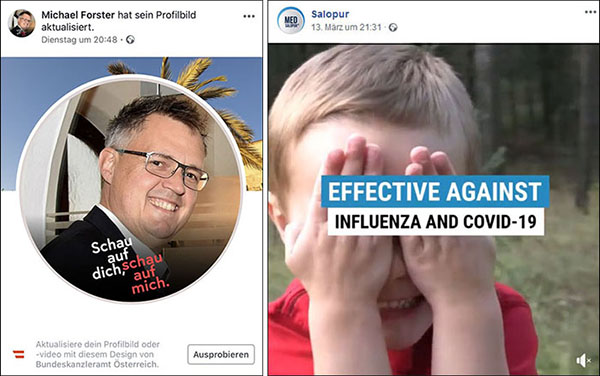 Ein Direktvermarkter namens Fortis in Hall sieht die große Krise als große Chance und bewirbt ein simples Desinfektionsmittel mit dem Versprechen „!! Wirkt gegen Influenza und Covid-19 !!“